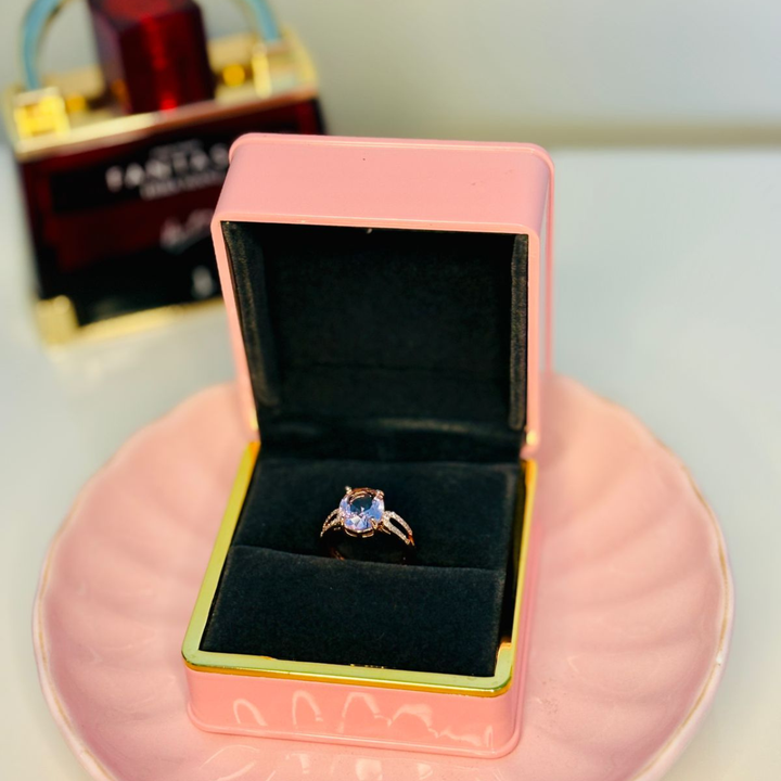The Celestial Glow Rose Gold Ring embodies a perfect harmony of luxury and sophistication. Designed with a luminous oval-cut centerpiece crystal, this ring captures light from every angle — creating a subtle sparkle that elevates your entire look.