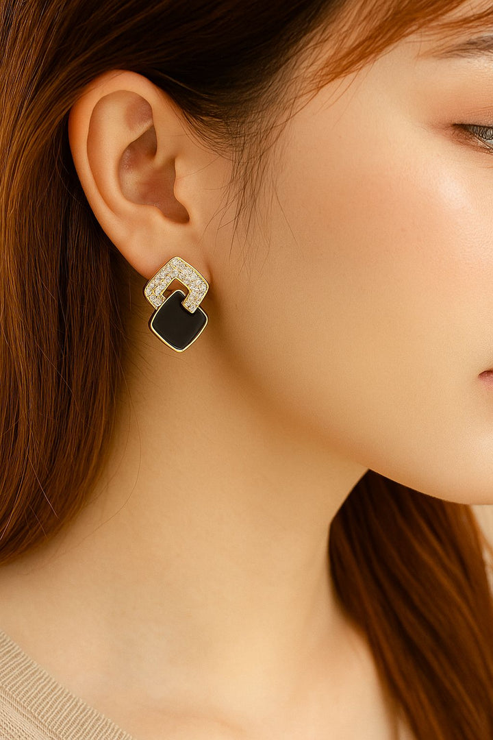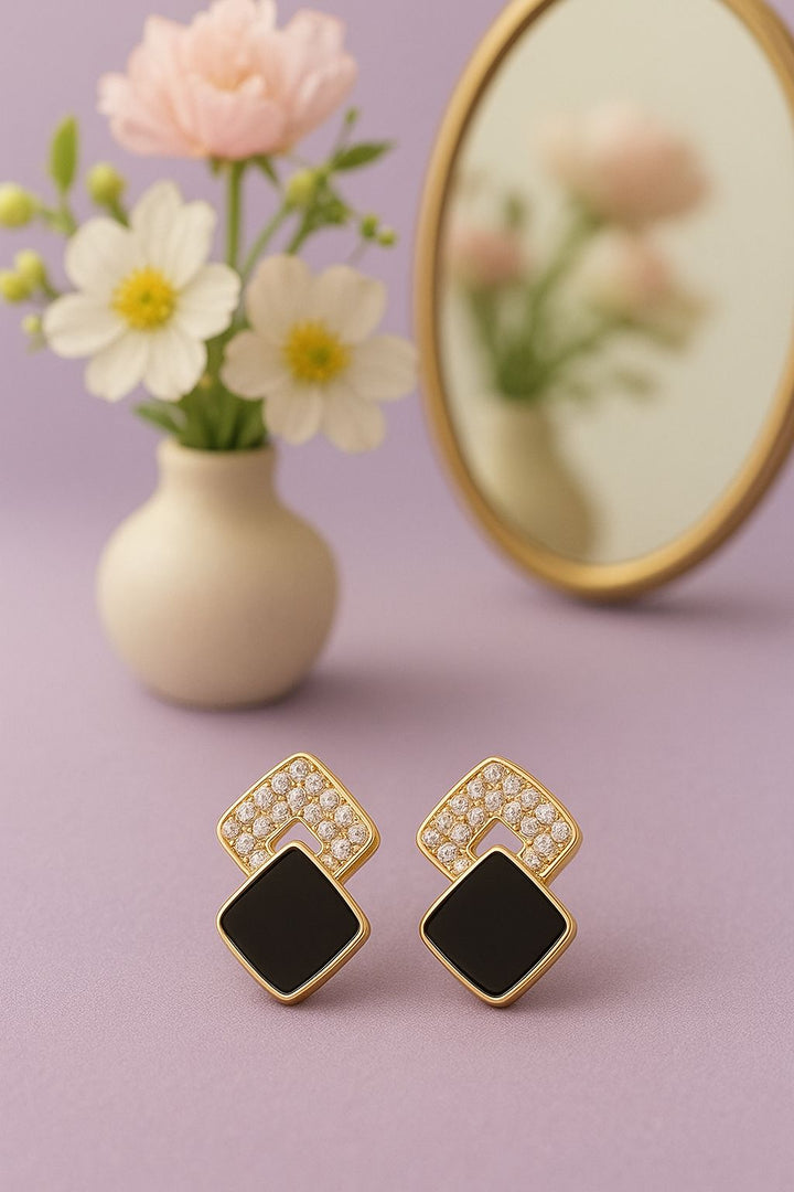 Crafted in a sleek black and silver palette, these diamond-shaped earrings blend casual elegance with formal sophistication. Their small size offers a subtle yet refined accent, perfect for elevating everyday outfits or complementing dressier looks with expert style.