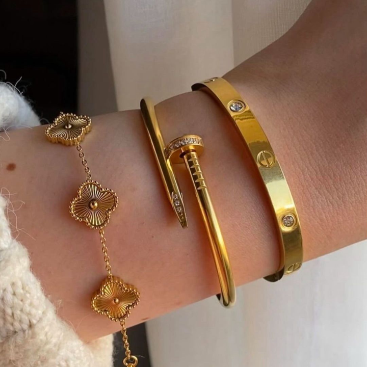 Define your signature style with the Golden Luxe Trio – a handpicked collection of three iconic bracelets, crafted to make you shine.