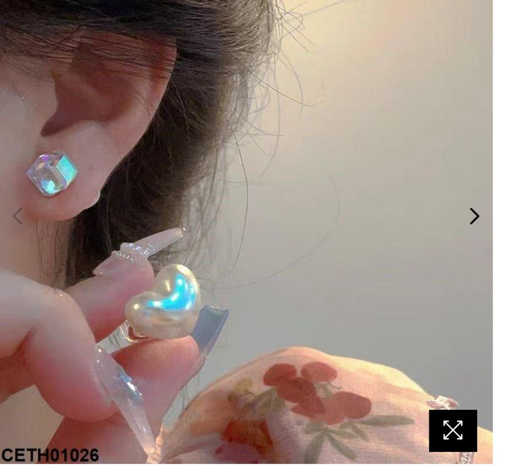 These Heart Stud Tops combine elegance and modern artistry, featuring a delicate white 3D heart design paired with a vibrant multi-color cube. Crafted with precision, they offer a unique blend of subtle sophistication and playful color, perfect for adding a refined touch to everyday wear or special occasions. Their compact size ensures comfortable, lightweight wear while making a distinctive style statement. Ideal for those seeking understated yet eye-catching accessories.